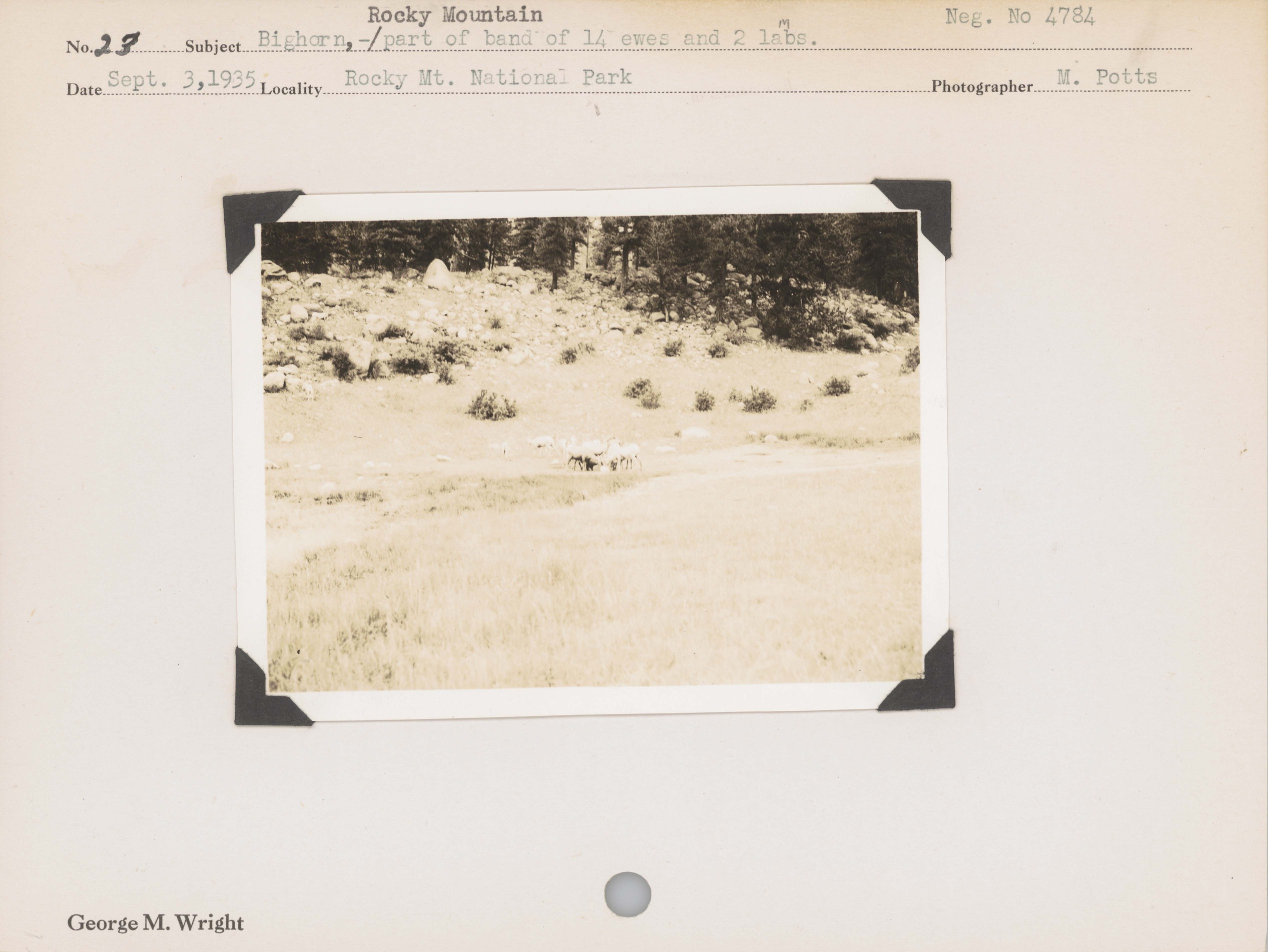 Bighorn, Rocky Mountain--Part of band of fourteen ewes and two lambs. Locality: Rocky Mountain National Park. Negative #: 4784