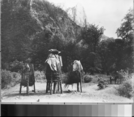 Detail of L. Smaus stereo (RL-16,591). Labelled on back: "Cashes, or Indian Acorn Storehouses." Chuck-ahs in Yosemite Valley.