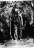 Galen Clark on overhanging rock, Glacier Point, Yosemite
