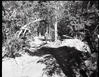 Dirt road from Potato Hollow to Kolob Creek with a small green fir tree uprooted and pushed off road. ; ZION Museum and Archives Image 101_02_003 ; ZION 8291