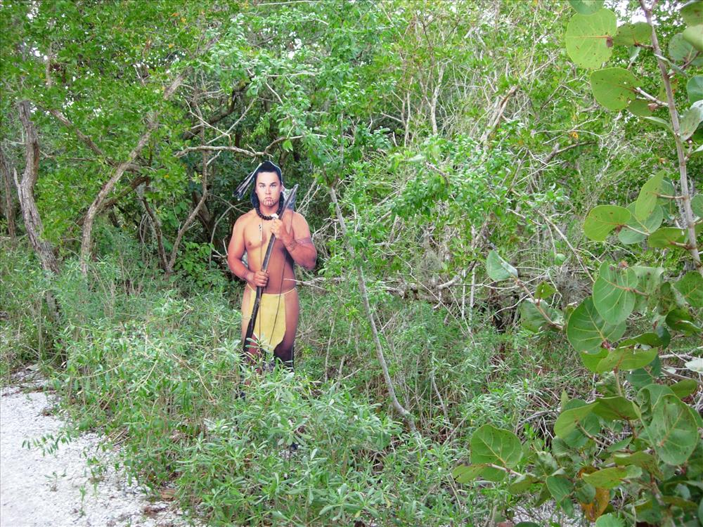 Cutout exhibits of 16th century explorers and Native Americans on the nature trail at De Soto National Memorial in Dec. 2004