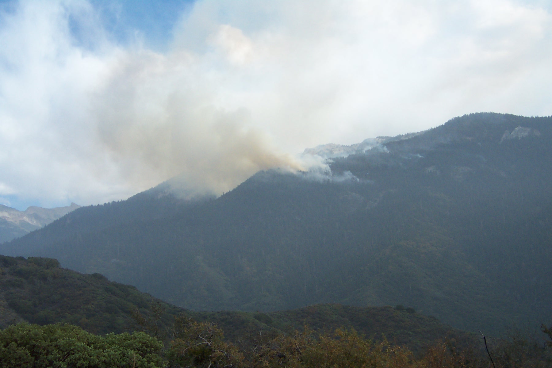 The Tar Gap Prescribed Fire was ignited in October of 2002, and totalled 1,209 acres burned in short-needle mixed coniferous forest with a large component of giant sequoia and mature chaparral. Primary objectives were to reduce hazardous fuels and to restore fire to its natural role within the ecosystem. Firing was done with hand ignition using primarily a spot ignition pattern. These photos were captured by SEKI fire monitoring crew and show smoke patterns and air quality conditions during the burn.