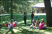 Children sit in two groups outside of the Education Center while Ranger Jessica Korgie and an SCA intern explain how to play the Stake Your Claim homesteading game. During 2010 SCA interns assisted with several projects including water quality monitoring, environmental education, and photographic monitoring.