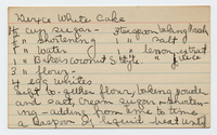A recipe for Dixie White Cake. The recipes written on a note card and it is part of Bess Truman's recipe collection.