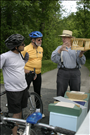 Cuyahoga Valley National Park offers a variety of interpretive programs throughout the year. Historical programs like this one interpret 19th century life in northeast Ohio. || A costumed park volunteer interprets the historic Station Road Bridge which crosses the Cuyahoga River. This is one of several stations in a program that started on the Cuyahoga Valley Scenic Railroad then visitors biked back along the Towpath Trail where they met various park rangers and volunteers interpreting transportation history in the region.