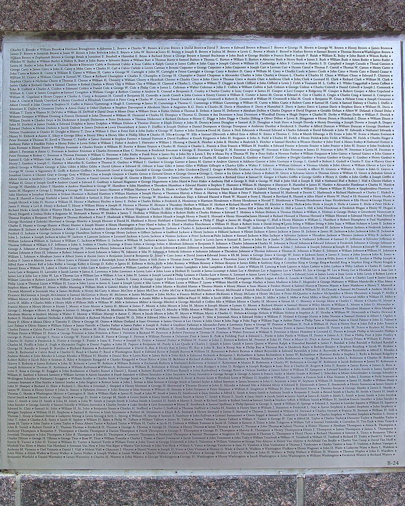 At the center of this monument is a metal sculpture surrounded on three sides by a "Wall of Honor," listing the names of 209,145 United Colored Troops on 166 burnished stainless steel plaques arranged by regiment. The plaques on this record memorialize the 11th Regiment, including the 11th Regiment, United States Colored Heavy Artillery (plaques A23, B24, B25); 11th Regiment, United States Colored Infantry (Old Organization) (plaque B25); and 11th Regiment, United States Colored Infantry (New Organization) (plaques B25, B26).