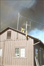 Firefighters battle flames in structures during the Long Mesa Fire, Mesa Verde National Park, July-August 2002