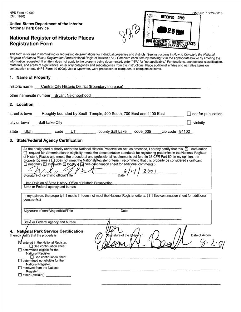 Salt Lake City ; Roughly bounded by S. Temple, 400 South, 700 East and 1100 East