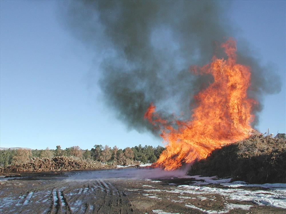 Brush pile burn as part of fuel reduction, Mesa Verde National Park, Jan. 2002