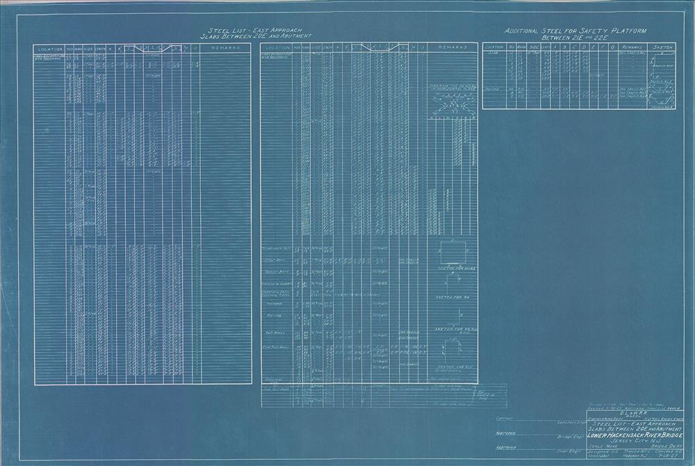 028 Lower Hackensack River Bridge--Steel list--East approach--Slabs between 20E and abutment--Jersey City, NJ [1927.07.28] Sheet no. 28