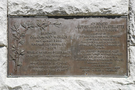 Monument is a 90' high obelisk of coursed, rock-faced granite resting on a 30' square podium. At base is a bronze statue of Peace on a separate granite platform.