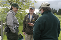 Cuyahoga Valley National Park is designated an Important Bird Area by the Audubon Society of Ohio, in part because of the restored grasslands at the site of the former Richfield Coliseum. A property once known for its sports/concert arena is now managed by the National Park Service as a grassland for rare birds. Cuyahoga Valley National Park offers year-round programs on bird watching. || Visitors talk with Lisa Petit, Chief of Resource Management; former Richfield mayor Ralph Waszak, Sr.; and another volunteer at an interpretive program called After the Coliseum in 2006. The program was an opportunity for local residents to learn how the park intends to manage this newly restored property.