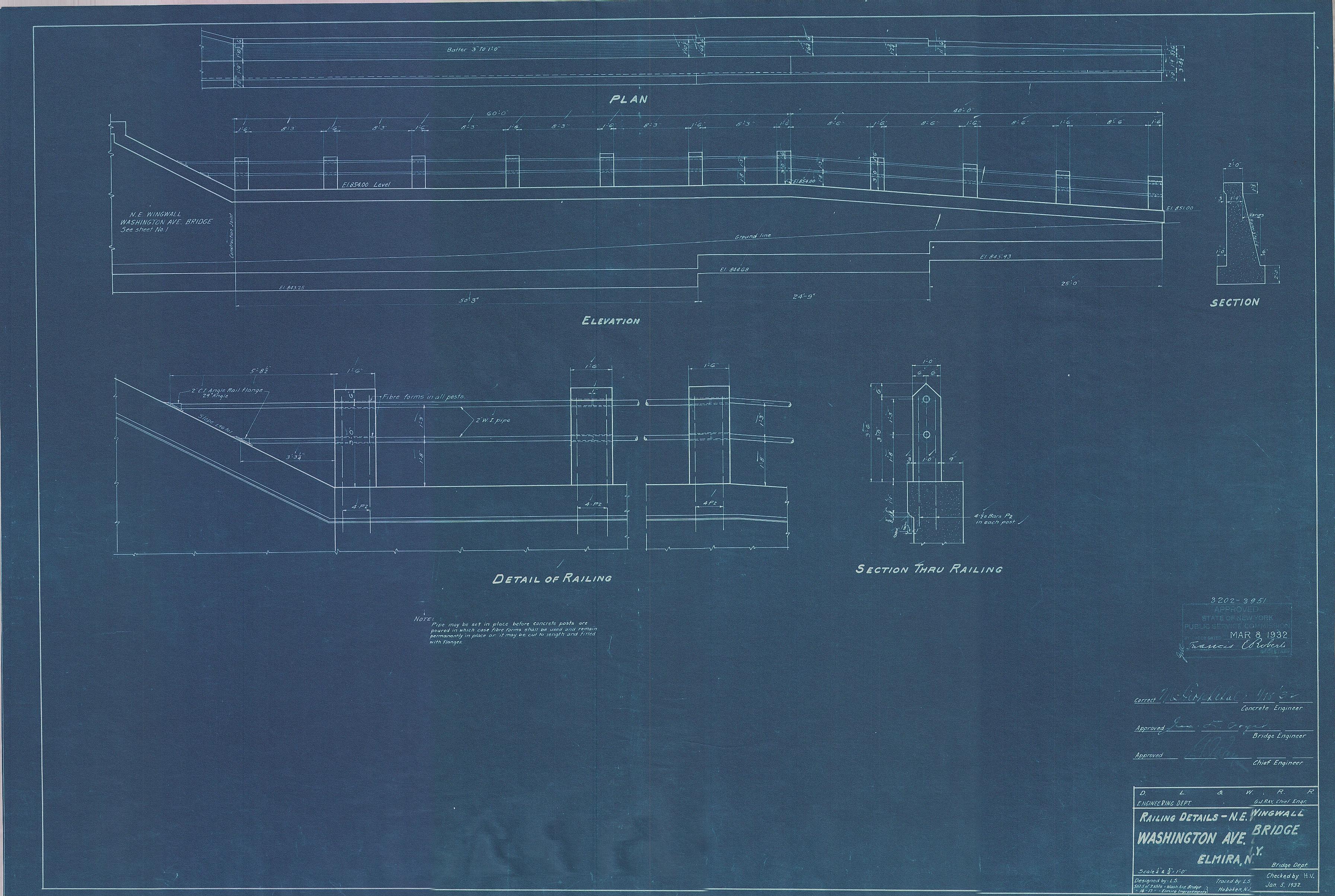 Washington Avenue--Railing details, northeast wing wall--Elmira, NY [1932.01.05] Sheet no. 5 of 7