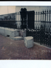 OCH-Exterior-Stones knocked loose by truck or school bus outside of carpenter's shop at the OCH. ; c 1988