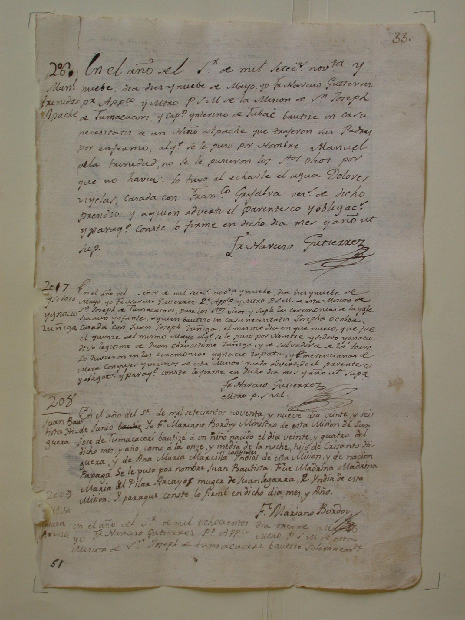 Tumacácori Mission Record, page 51