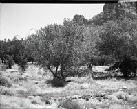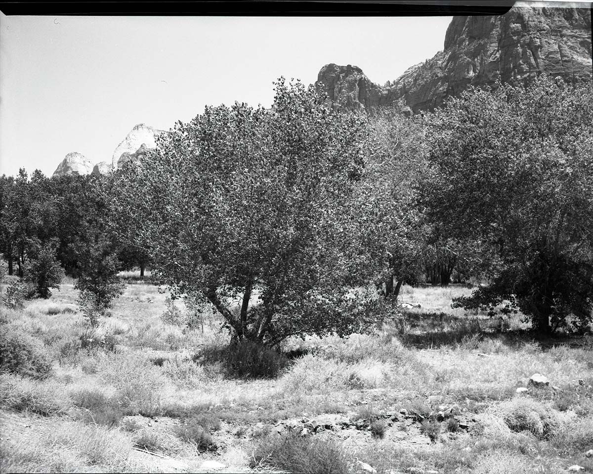 Insect control in Zion Canyon, spraying cottonwoods. ; ZION Museum and Archives Image 105_03_008 ; ZION 10319