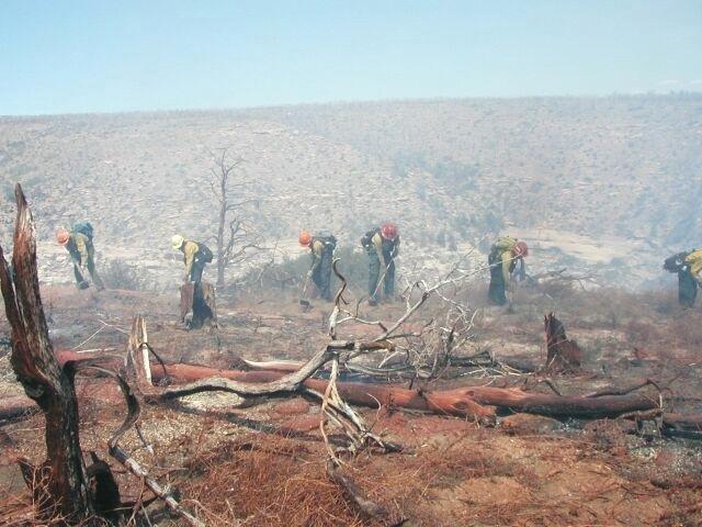 Fire fighters working on fire lines during the Long Mesa fire at Mesa Verde National Park, summer 2002.