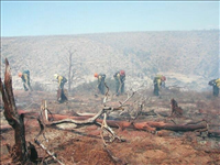 Fire fighters working on fire lines during the Long Mesa Fire, Mesa Verde National Park, July-August 2002