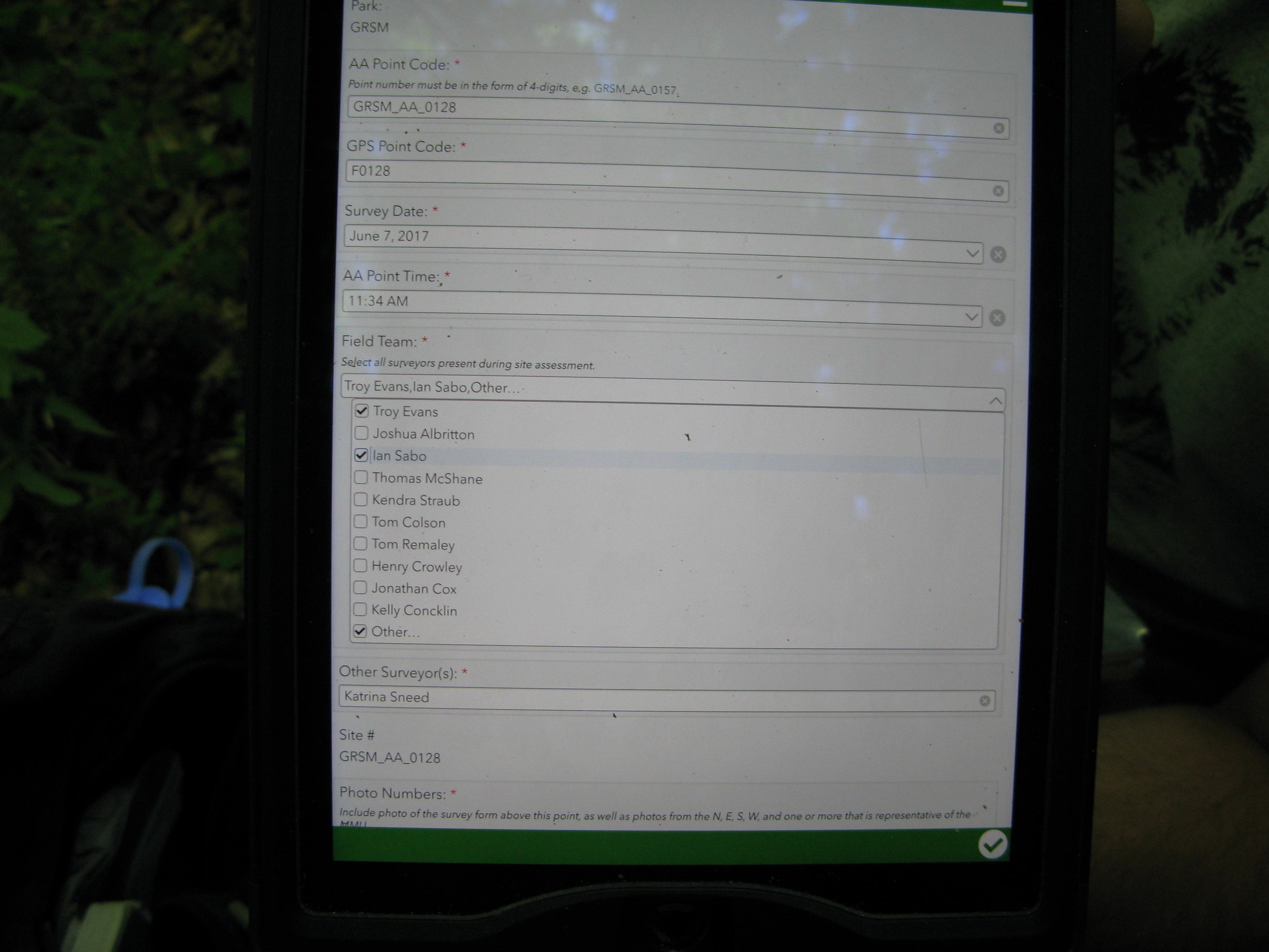 Plot Code: GRSM_AA_0128_1 from the Great Smoky Mountains National Park (GRSM) Accuracy Assessment.