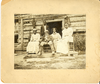 LIBI_00019_00247; This item is a card-mounted photograph of a black family taken in front of a log cabin. The photograph is 3 1/2 x 4 1/2" (5 1/2 x 6 1/2" mounted on a tan mount) and was produced circa 1865 by an unknown photographer. One of the subjects in the photograph could possibly be Senator Bradford. There is a water stain on the front right side. Some foxing is evident on the verso.; PRINT, PHOTOGRAPHIC [Mounted on card]; Courtesy of the National Park Service, Little Bighorn Battlefield National Monument, LIBI_00019_00247, Unknown Photographer, "African American Family in Front of a Log Cabin," circa 1865