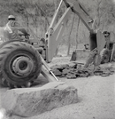 Broken slabs of road during construction near the Temple of Sinawava. ; ZION Museum and Archives Image 002.03.07-4of13 ; ZION 15933