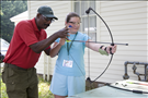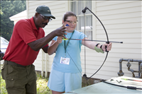 Cuyahoga Valley National Park (CVNP) and Cuyahoga Valley National Park Association present Get Up, Get Out & Go!, a campaign introducing recreational opportunities along the Ohio & Erie Canal Towpath Trail in Akron and the national park. The program targets residents in the urban neighborhoods surrounding the Towpath Trail in Akron which is a part of the larger Ohio & Erie Canalway, a national heritage area. Get Up, Get Out & Go! serves as an invitation for kids 11 to 14 years old and their families to give the Towpath Trail a try and to venture further along the trail into CVNP. || Youth try archery at the Get Up, Get Out, Go! kickoff event in June 2007.