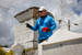 Man in PPE takes break to pose while applying herbicides using a brush to apply herbicides,