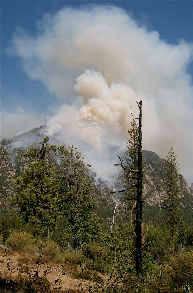 Two adjacent smokes from lightning strikes were discovered by park helicopter on July 22, 2005, in the large wilderness area north of Cedar Grove in Kings Canyon National Park. Because of remoteness of location and desireability of fire for resource benefit, the fires were categorized as wildland fire use. Within 24 hours the two fires had joined together and were put under the jurisdiction of several fire use teams. The fire continued to burn throughout the summer and fall with a total of 8,675 acres burned in Kings Canyon NP and approximately 1000 acres burned in the adjacent Sequoia National Forest. These images were captured by members of SEKI Fire Monitoring Crew who were responsible for monitoring the Comb Fire from its beginning throughout the summer and fall.