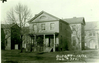 Black and white photo of a brick house with a front porch. Two trees out front. A small bench sits in front of the smaller tree on the right of the house. Writing on photo reads, “BLDG. 9- 12/32. NEG. 754.”