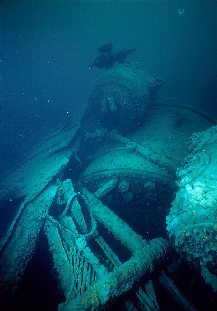 Diver on structure of the shipwrecked passenger steamer George M. Cox
