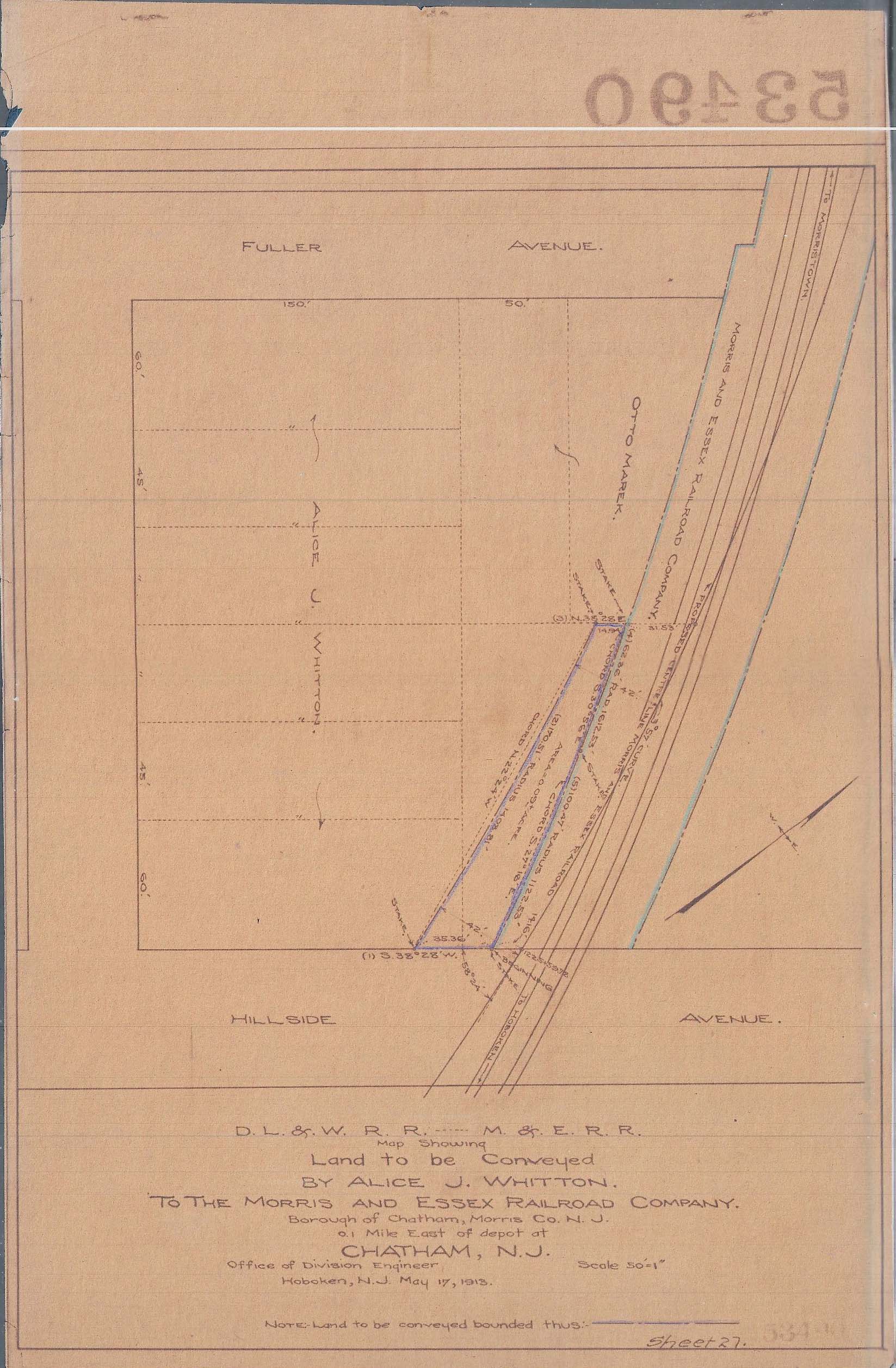 008 Land to be acquired from Alice F. Whitton--Chatham, NJ [1913.08.21] Land size is 3680 square feet.