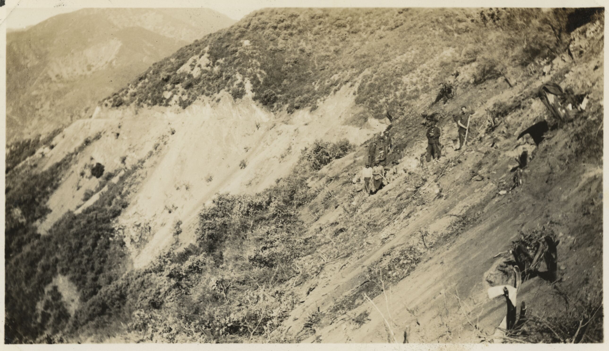 CCC enrollees constructing trail, location unknown (California).