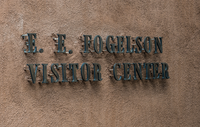 Visitor Center sign that reads "E.E. Fogelson Visitor Center"