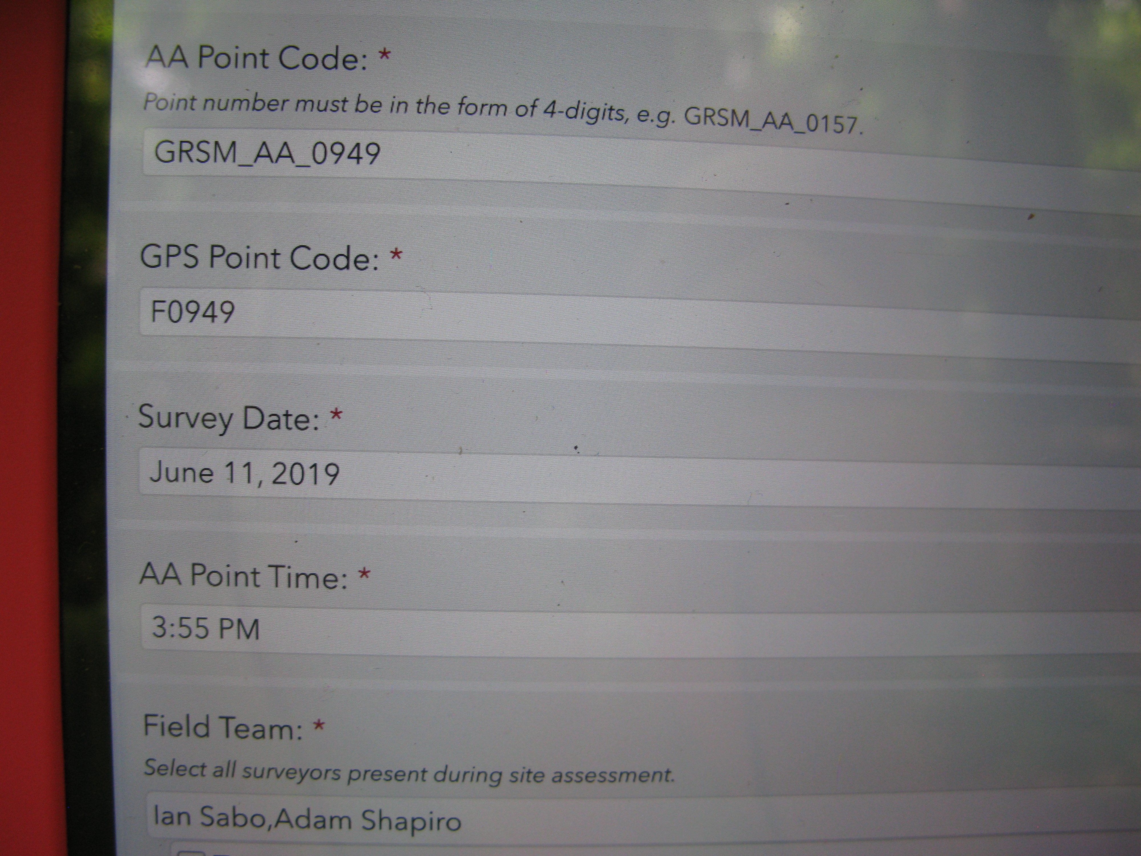 Plot Code: GRSM_AA_0949_1 from the Great Smoky Mountains National Park (GRSM) Accuracy Assessment.