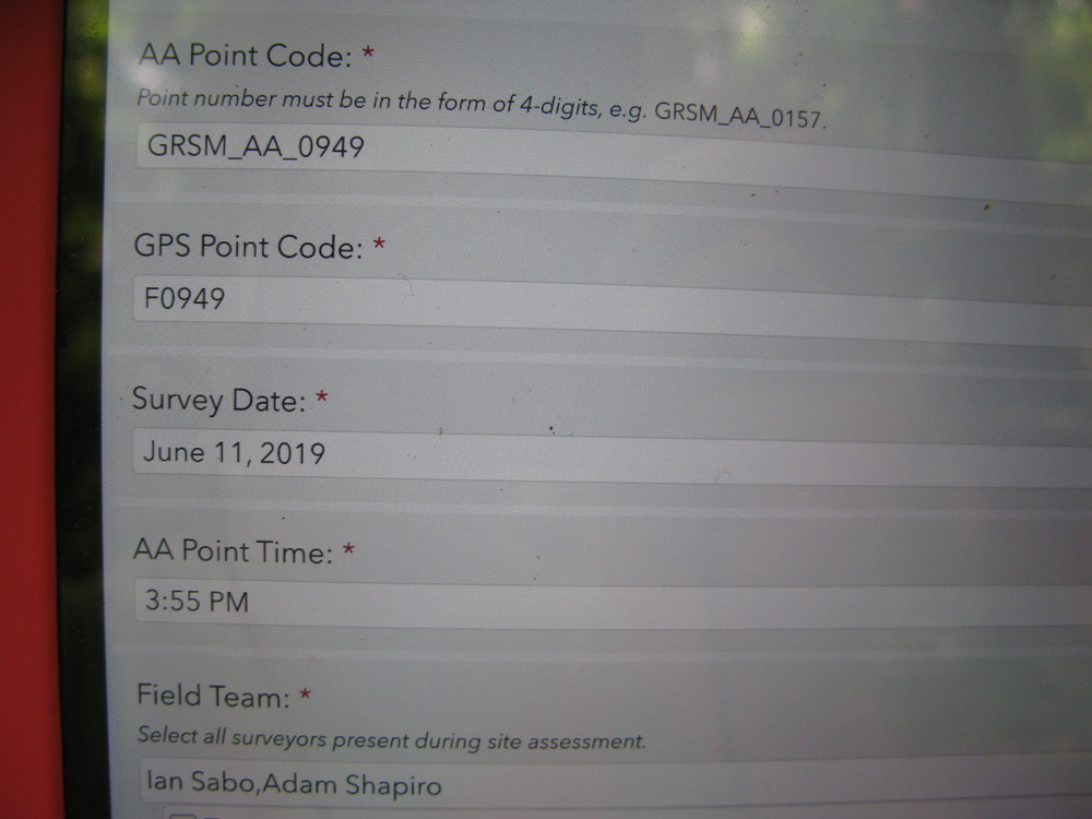 GRSM Accuracy Assessment. Plot Code: GRSM_AA_0949_1