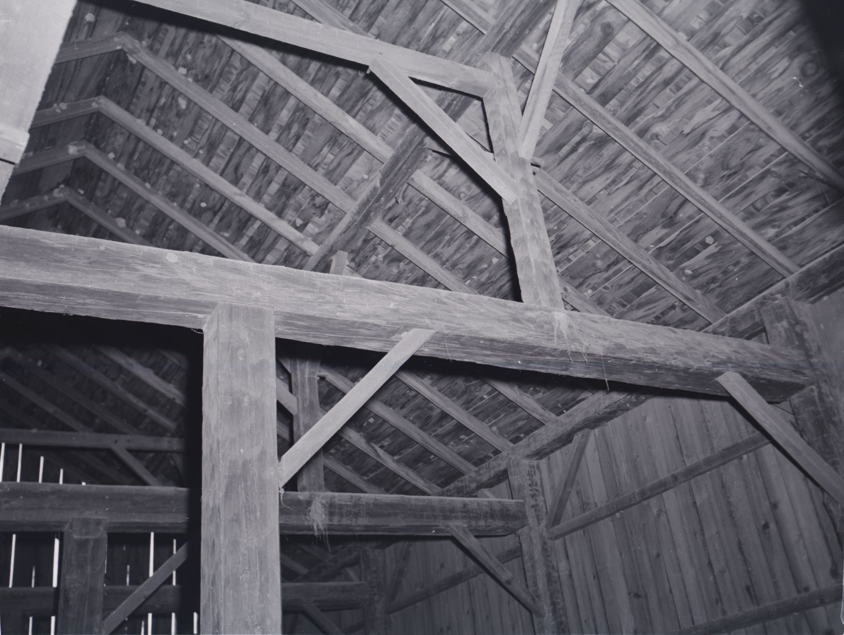 Interior of Van Matre Horse Barn showing old hand-hewn timbers