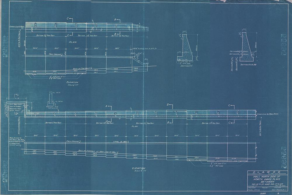 East Orange Improvements--Wall north side of North Ward Place between North 15th and North 17th Streets--East Orange, NJ [1922.05.26] Sheet no. 08