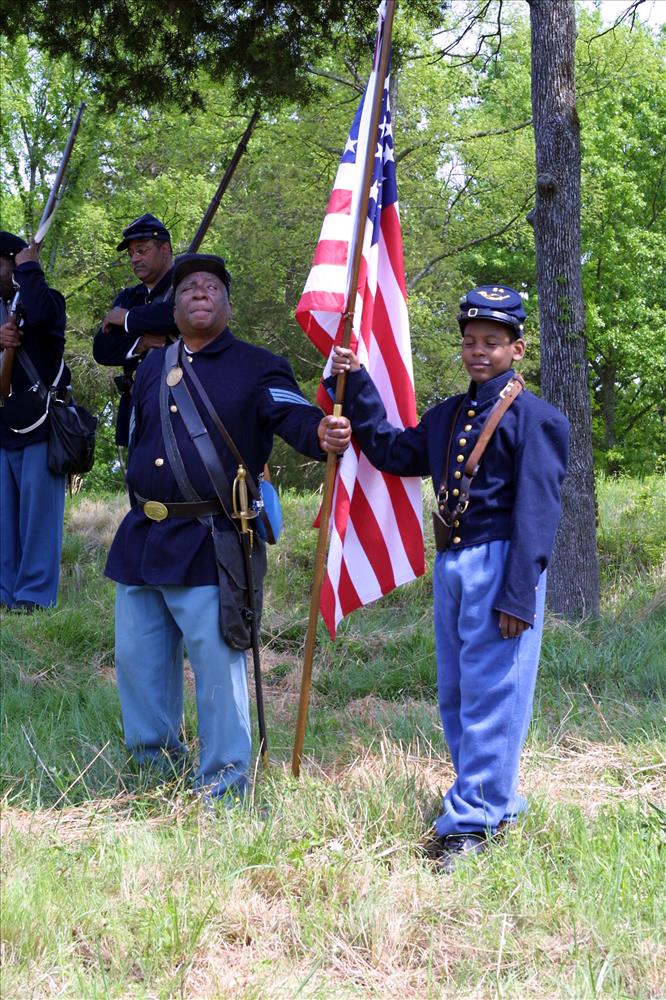 Civil War interpreters of men training to join the U.S. Colored Troops at Stones River National Battlefield, April 2004