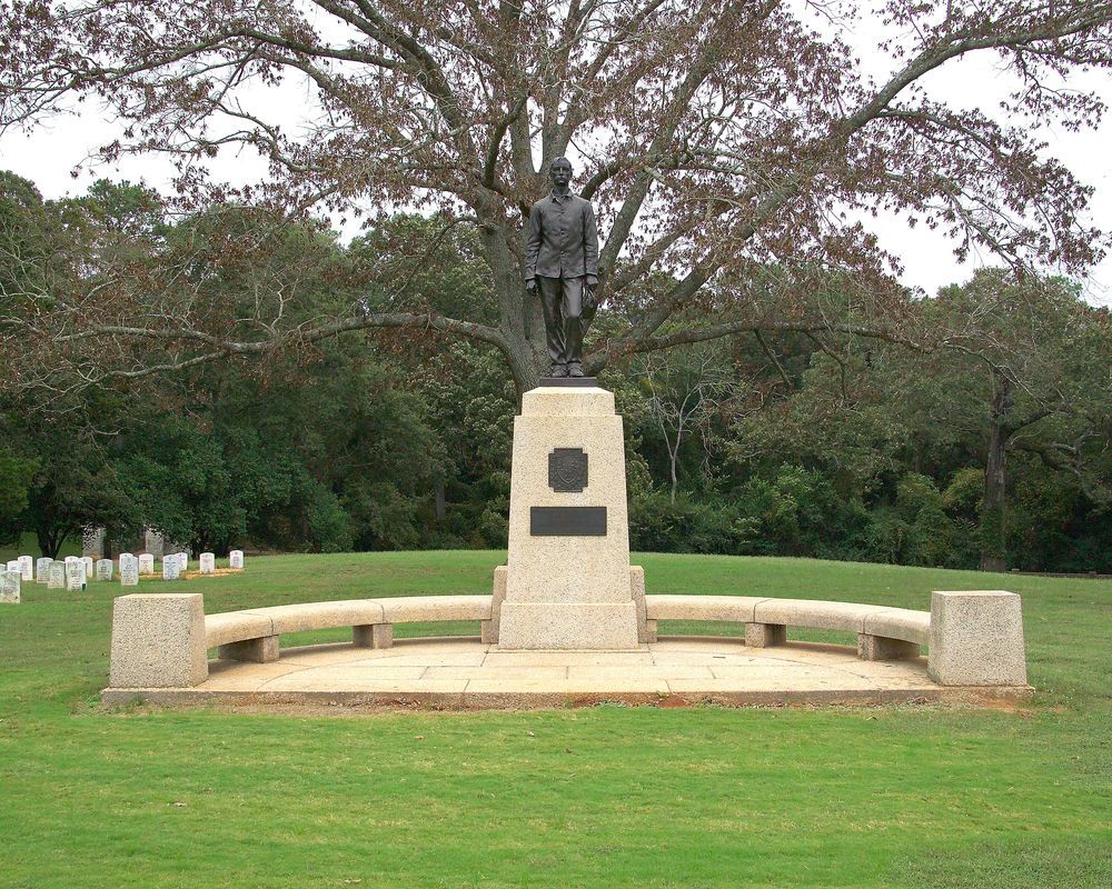 Semicircular composition with a tapering granite pedestal at the center supporting an 8' bronze figure of a soldier. Benches curve out from the pedestal enclosing a granite floor and terminating in granite slabs. 24' 8" wide x 12' 4" deep x 16' high.