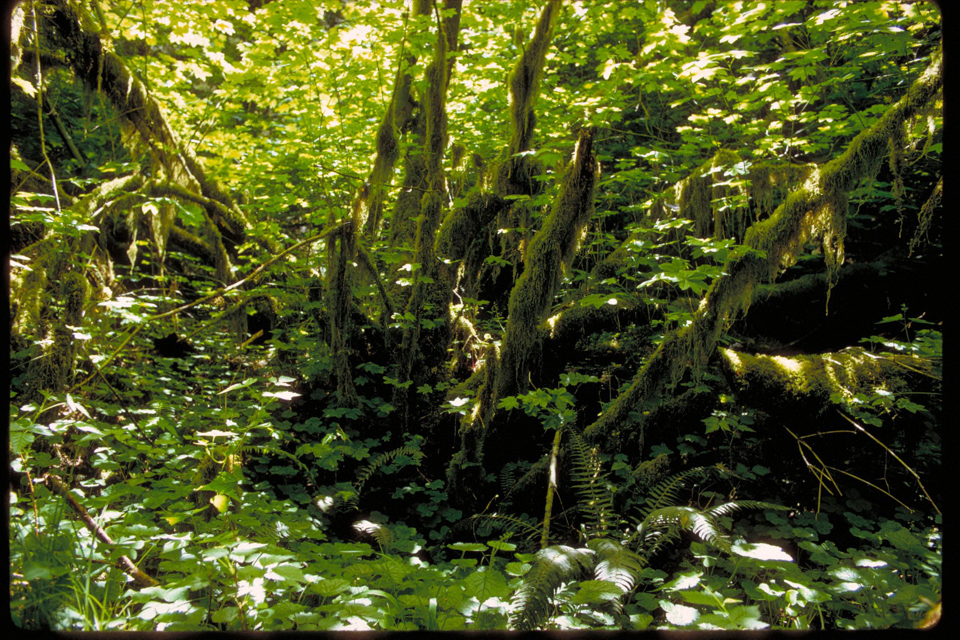 Rainforest with mosses and ferns.