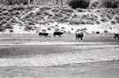 BW photo of the 1937 grazing study 35MM. Photo of cows grazing in Hop Valley. ; ZION Museum and Archives Image 105_07_01089 ; ZION 15933