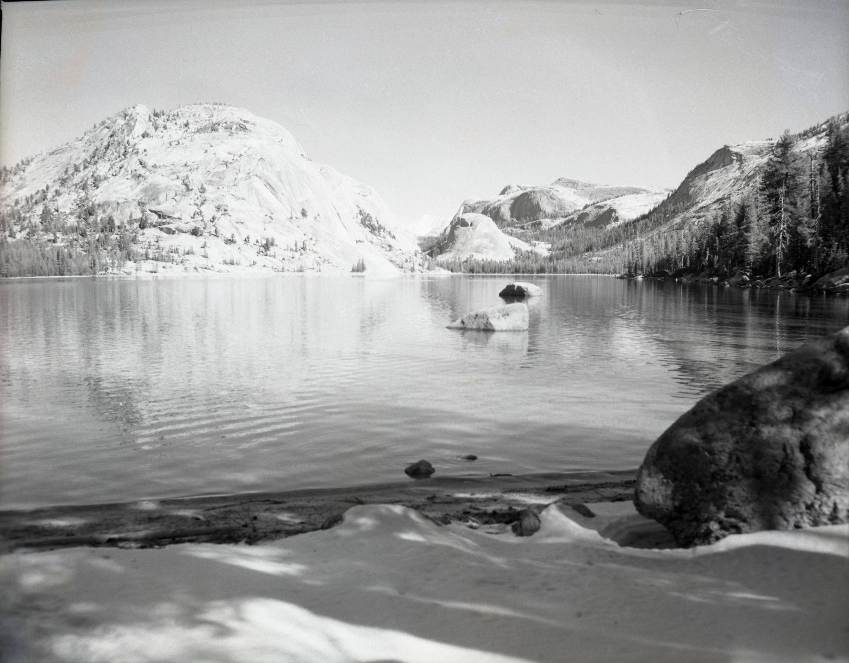 Copy negative of Watkins (?). View of Tenaya Lake. Copied from originals loaned by Francis P. Farquhar.