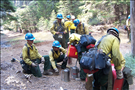 Prescribed fires are designed by management to achieve resource objectives, usually a combination of ecosystem restoration and reduction of high hazard fuel accumulations. The Sunset Fire burned 147 acres. Predominant firing technique consisted of blacklining combined with strip head fires. Although the park was in extreme fire danger at the time of burn, all other parameters were favorable. It was decided to commence ignition in the early evening and burn through the night, when conditions are more benign. These photos show various images of night burning, hotshot crew on ignition operations and ignition specialists at work.