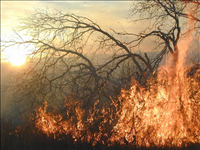 High intensity flames in dense brush during Far View prescribed fire, November 2001