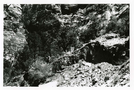 BW Photo of rock slide near echo rock - 35MM. ; ZION Museum and Archives Image 107_06_05008 ; ZION 15933