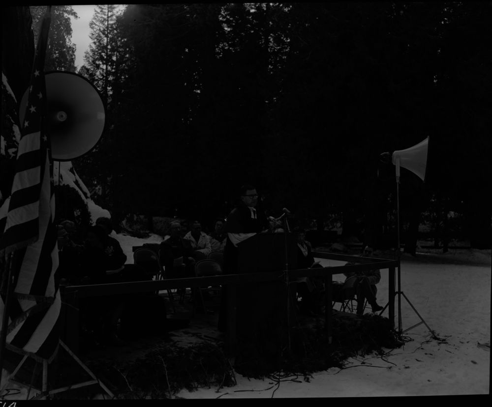 Robert Badaracoo, Grant Grove, KCNP, Nation's Christmas Tree Ceremony, 1963. Park Superintendent'. Supt. John Davis.1963. Bishop Pike speaking. 631215.