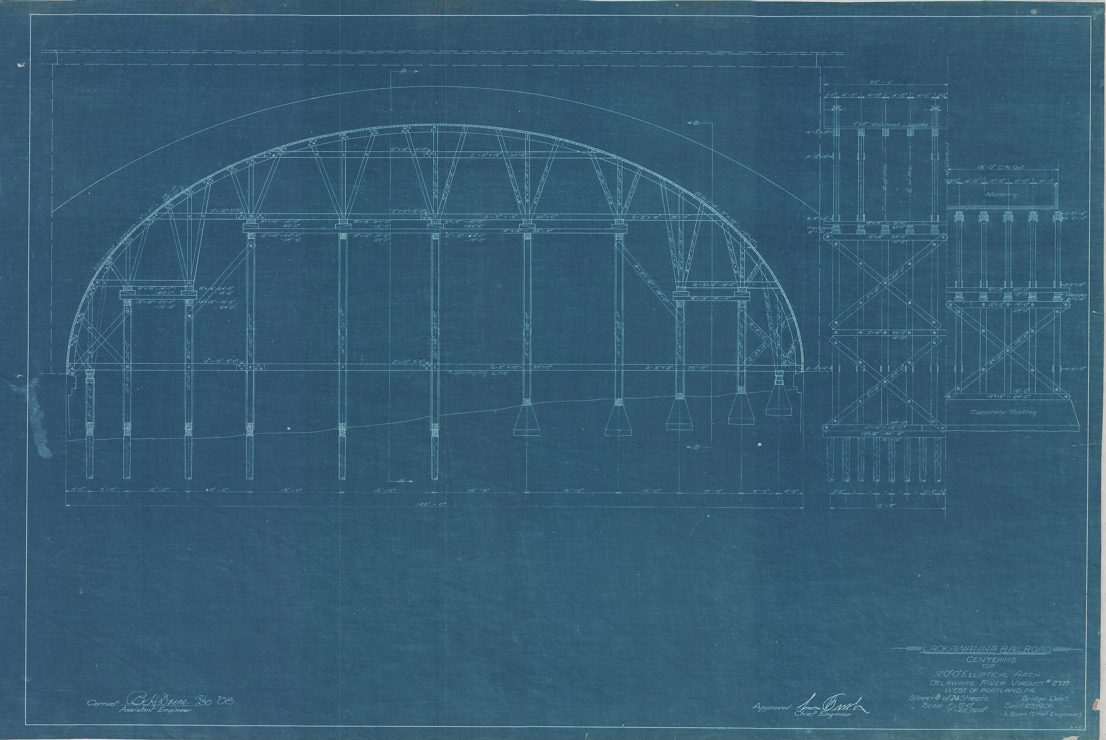 Delaware River Viaduct Bridge no. 27.19--Centering for 120-foot elliptical arch--Slateford, PA [1906.09.27] Sheet no. 8 of 24