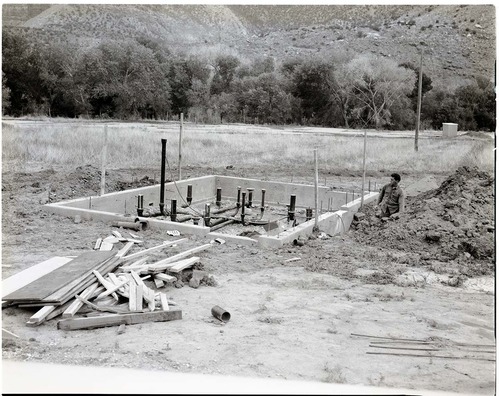 Construction of sanitation station near entrance to South Campground. ; ZION Museum and Archives Image 003_01B001 ; ZION 7987