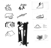 Illustration of typical trail blazes, based on the drawing found on the PATC park maps. Four symbols added on the extreme right of the illustration are photocopies from the Crater Lake National Park wayside exhibit project.; Abbr=WE