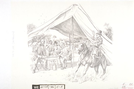 Scene depicts Maj. Gen. Sterling Price's headquarters, beside the log home of William Edwards, on the morning of August 10, 1861, shortly before the Battle of Wilson's Creek.